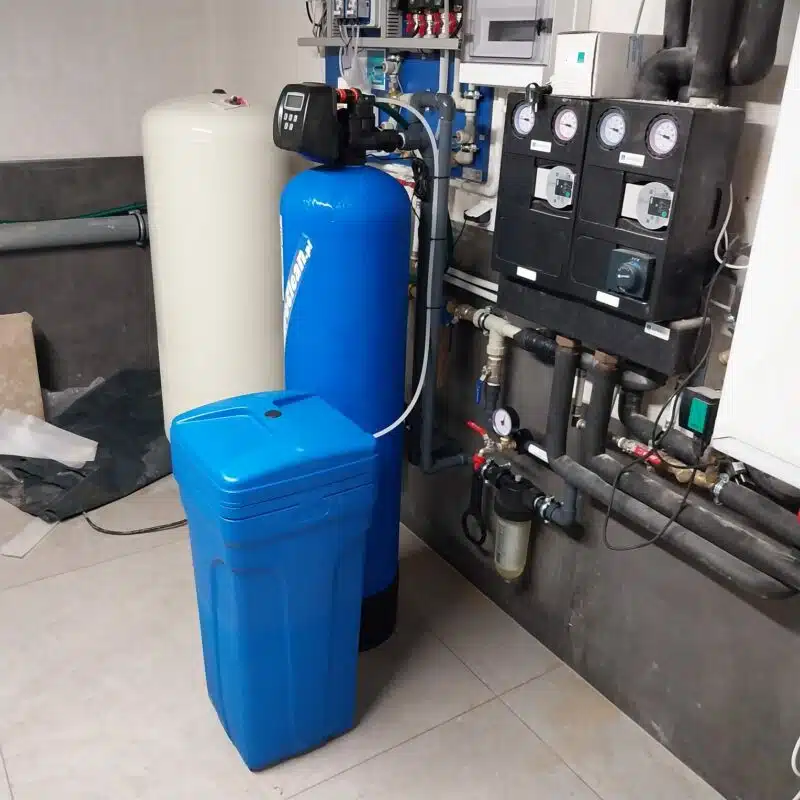 Wyniki analizy wykazały, że twardość wody wynosi około 16⁰dH, stężenie żelaza to około 70 µg/l, a manganu ponad 40 µg/l. Klient zlecił, aby woda była całkowicie pozbawiona żelaza, manganu oraz twardości.